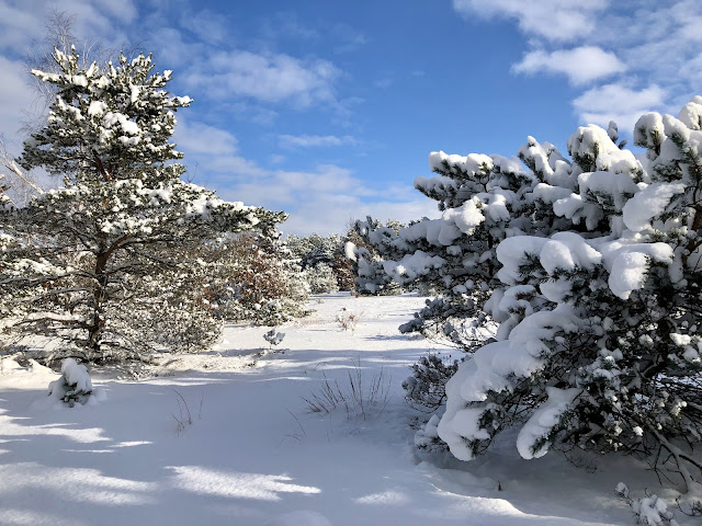 Wednesday January 5, 2022, Ottawa County Michigan and surrounding areas were under a Winter Storm Warning. The morning was clear, in the afternoon the snow started falling and kept coming for the next two days. There were breaks in the snowstorm and the sun would peek out at times. I'm not sure what the total snowfall amount for our area was but last night at Stearns Creek Park the snow was more than 18 inches deep on the trail.